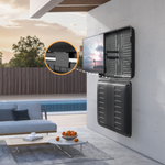Esta carcasa convierte cualquier televisor convencional en una opción ideal para el entretenimiento al aire libre. Ofrece una alternativa económica al comprar un televisor especializado para exteriores. Esta solución protege eficazmente el televisor contra lluvia, viento, rayos UV y vandalismo. Contiene un soporte móvil que ajusta el ángulo de visualización según la iluminación. Además, posee ganchos para sostener el panel frontal y orificios para candados que protegen contra robos.