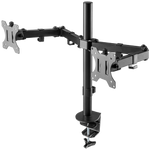 El OVM-D1332 es un popular y accesible brazo para dos monitores con ajuste de altura vertical y dos articulaciones horizontalmente. Brindan un amplio posicionamiento para dos monitores uno al lado del otro. Fabricado en acero de alta calidad, este brazo mecánico puede soportar firmemente monitores de hasta 32” y 8 kg/17,5 libras. La instalación es fácil con el montaje con abrazadera incluido o el montaje con arandela para escritorio. Las placas VESA desmontables hacen que el montaje y desmontaje de los monitores sea fácil y sin esfuerzo. Se incluyen clips para cables que mantienen los cables perfectamente organizados.