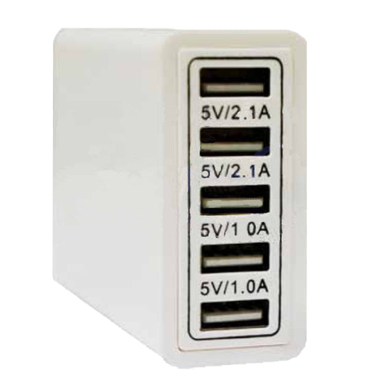 Cubo adaptador de energía USB de 5 puertos, Cargador, 40W/8A 5V 2.1A 1.0A, Celulares y Tablets, color Blanco.